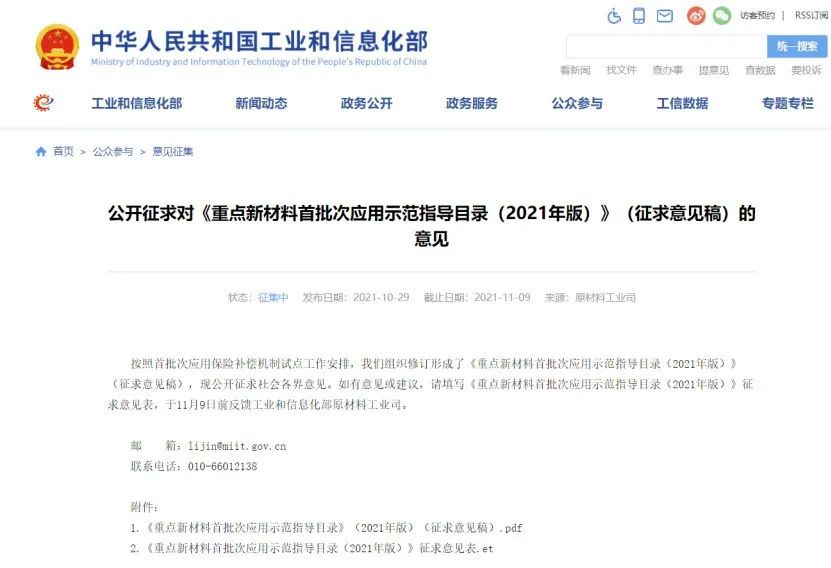 公開(kāi)征求對(duì)《重點(diǎn)新材料首批次應(yīng)用示范指導(dǎo)目錄(2021年版)》(征求意見(jiàn)稿)的意見(jiàn)